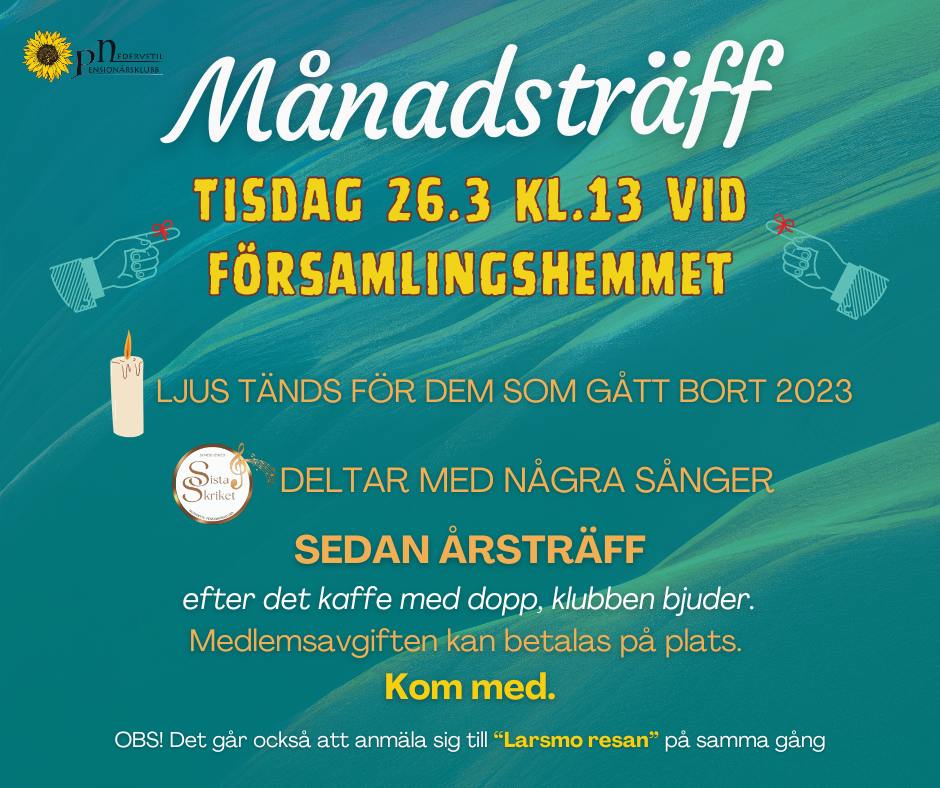 Vi kunde konstatera att Pensionärsklubben har vind i seglet och vi seglar vidare mot nya spännande mål, vissa projekt är i hamn, men ännu är det fler projekt på kommande som tex.