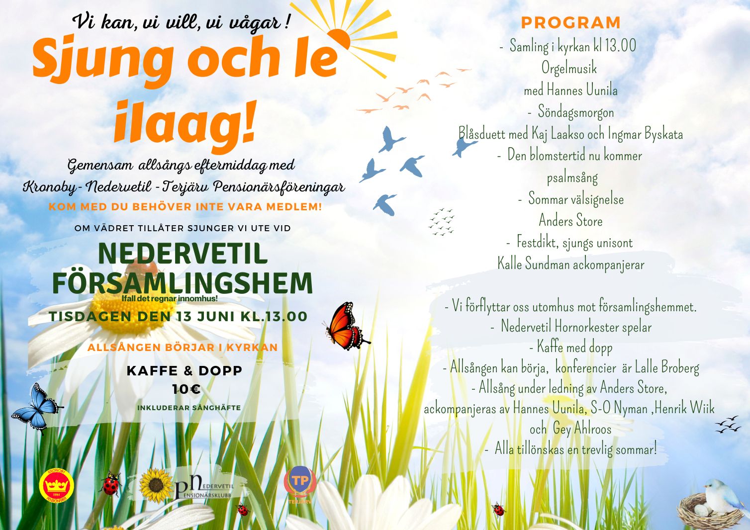 ”Den vida kända kören”, enligt tillförordnade dirigenten Henrik Wiik, sjöng några sånger och Anders Sandberg kompade på fiol. Eva-Lott Björklund (som inte kunde närvara) upplyste oss om ton art, "D överlag är säker tonart ti he mesta" så det var tryggt ti repa ti veks.