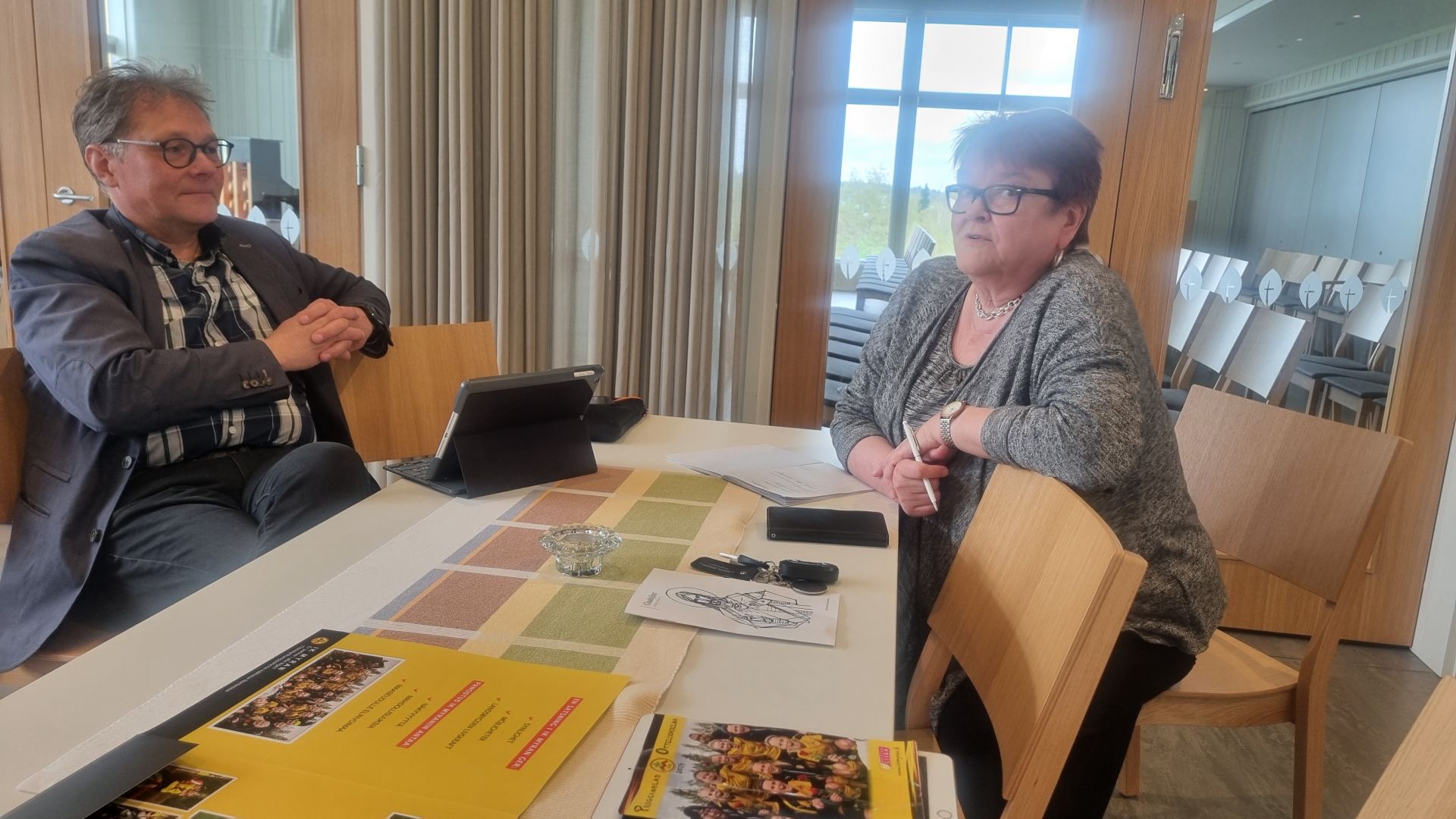 Distriktsombudsman Patrick Ragnäs från SPF och Nedervetil Pensionärsklubbs ordförande Bodil Granskog.