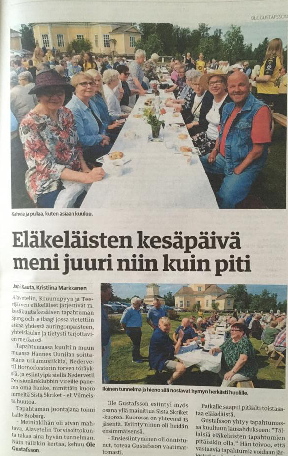 På Eva-Lots initiativ inbjuder vi även Kronoby och Terjärv pensionärer möjlighet att delta i körverksamheten. Vår målsättning är att tröskeln att komma med skall vara låg! Man behöver absolut inte ha sjungit i någon kör tidigare.